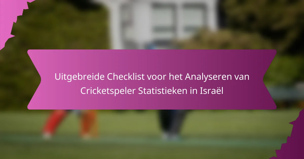 Het analyseren van cricketspelerstatistieken in Israël vereist een focus op belangrijke metrics zoals slaggemiddelden, bowlingeconomiepercentages en veldstatistieken. Door gebruik te maken van betrouwbare bronnen en op maat gemaakte methoden kunnen analisten nauwkeurige gegevens verzamelen die de prestaties van spelers op alle niveaus van het spel weerspiegelen. Verschillende platforms zijn beschikbaar om deze analyse te vergemakkelijken, en bieden uitgebreide inzichten in de effectiviteit van spelers en historische records.