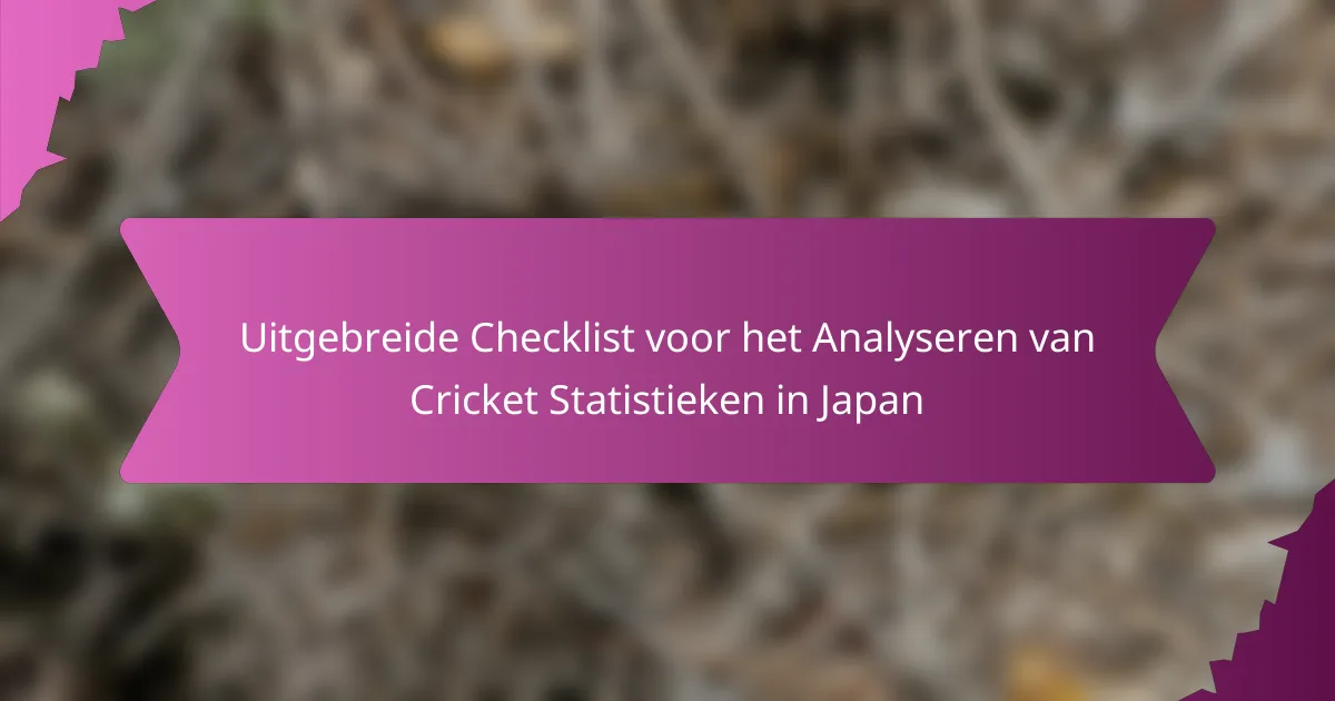 Het analyseren van cricketstatistieken in Japan is essentieel voor het begrijpen van de prestaties van spelers en teams, met belangrijke statistieken zoals batting- en bowlinggemiddelden, wedstrijdresultaten en teamranglijsten. Door gebruik te maken van verschillende gegevensbronnen, zoals officiële cricketbonden en sportanalytische platforms, kunnen liefhebbers waardevolle inzichten in het spel verkrijgen. Het gebruik van de juiste tools voor data-analyse kan dit begrip verder verbeteren, afgestemd op verschillende niveaus van expertise en analytische vereisten.