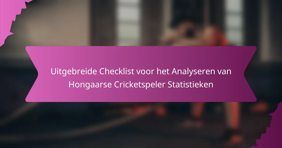 Het analyseren van de statistieken van Hongaarse cricketspelers vereist een uitgebreide aanpak die zich richt op belangrijke prestatiemetrics. Door het onderzoeken van slaggemiddelden, bowlingeconomiepercentages en spelersranglijsten kunnen analisten waardevolle inzichten verkrijgen in individuele bijdragen en de algehele teamdynamiek. Deze checklist dient als een gids om zowel slaggemiddelden als bowlingstatistieken effectief te interpreteren, wat zorgt voor een grondige evaluatie van de spelersprestaties.