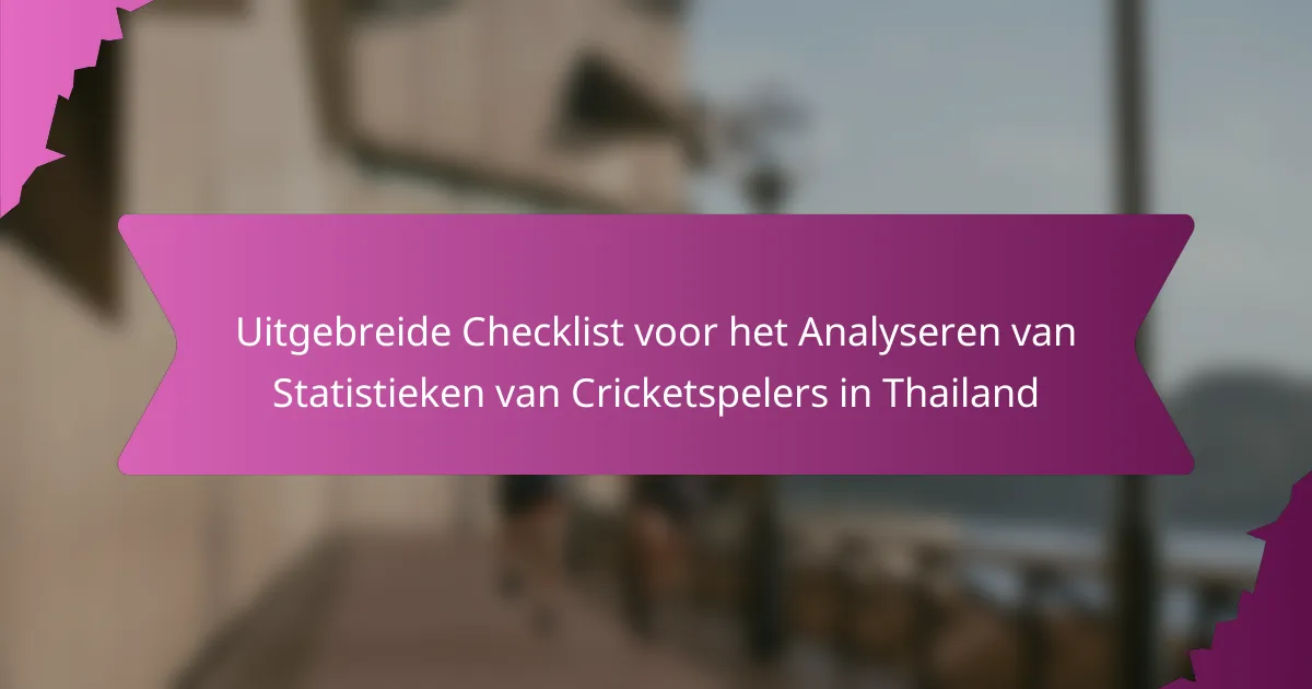 Belangrijke statistieken voor het analyseren van cricketspelers uit Thailand omvatten slagen gemiddelden, bowling gemiddelden, veldstatistieken, wedstrijdprestatie-metrics en spelersranglijsten. Deze metrics bieden inzicht in individuele prestaties en de algehele bijdragen aan het team.